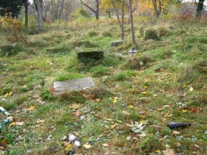 Stare, zdewastowane nagrobki przy ulicy Smutnej, przed utworzeniem lapidarium przy ulicy Smutnej w Szczecinie Klęskowie