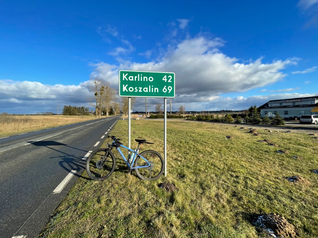 Na wysokości Płotów, trasa zaczęła mi się nużyć. Odbiłem na północ po raz ostatni w nadmorskie strony. Minąłem tablice informacyjną Kołobrzeg po około ośmiu godzinach i szybko udałem się na Dworzec Główny. Po drodze udało się zahaczyć o pasztecika z barszczem. To musiało wystarczyć bo większość restauracji była już zamknięta. Zima – martwy sezon.. Na liczniku 186 kilometrów. Musiałem delikatnie zjechać z trasy.