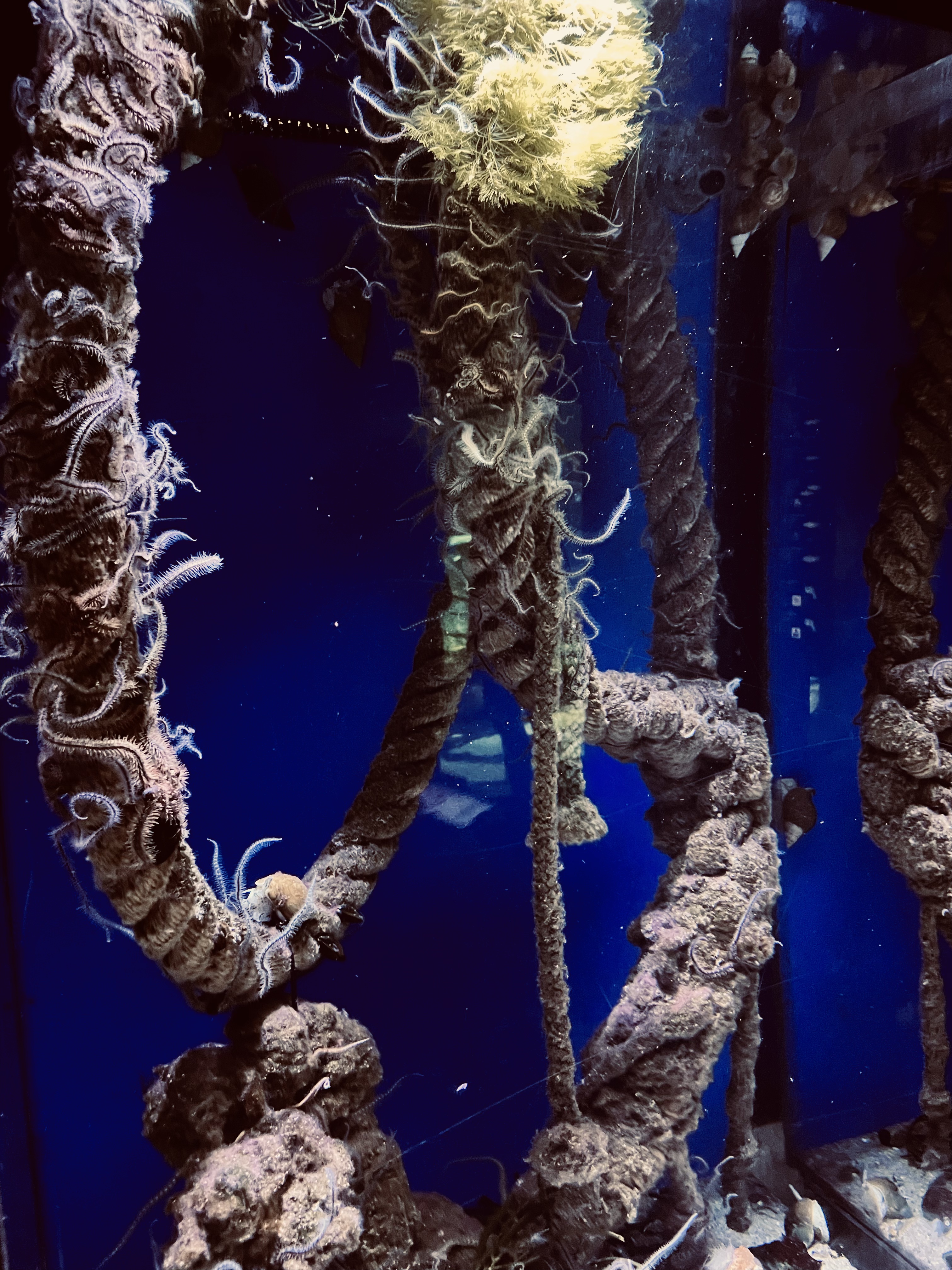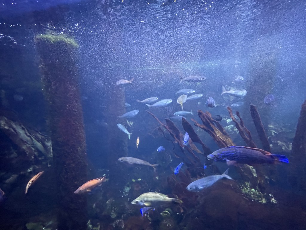 W Muzeum Morskim akwaria zostały podzielone na cztery obszary: Akwarium Tropikalne, Akwarium Śródziemnomorskie, Rekiny i Żółwie. Z wyjątkiem czterech małych akwariów w strefie wejściowej, zbiorniki znajdowały się w sklepionej piwnicy.