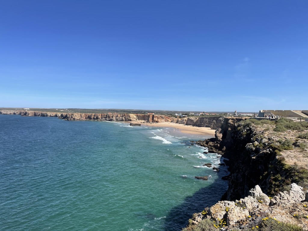 Sagres to nie tylko malownicze plaże, oferujące szereg atrakcji dla rodzin, dostosowanych do potrzeb osób w każdym wieku. Dla miłośników przygód wizyta w Twierdzy Sagres jest koniecznością. Ten historyczny zabytek, położony na klifach, zapewnia nie tylko przeżycia kulturalne, ale także zapierające dech w piersiach panoramiczne widoki na Ocean Atlantycki. Twierdza oferuje fascynującą podróż przez historię, pozwalając dzieciom odkrywać i uczyć się w angażujący sposób. Ponadto miasto słynie z kultury surfingu i chociaż może się to wydawać aktywnością dla bardziej odważnych, istnieją szkoły surfingu przeznaczone specjalnie dla rodzin. My nie surfujemy! Przecież nie można robić wszystkiego? 🙂 Poza plażami i atrakcjami, to skarbnica atrakcji turystycznych. Słynny Sagres Point, w miejscu, gdzie klify spotykają się z rozległym oceanem, oferuje zapierający dech w piersiach widok zachodu słońca, który maluje niebo w odcieniach pomarańczy i różu, zapewniając spokojną i romantyczną atmosferę dla całej rodziny. Pobliska latarnia morska na przylądku St. Vincent to kolejny obowiązkowy punkt orientacyjny, oferujący panoramiczne widoki i wgląd w historię morską.